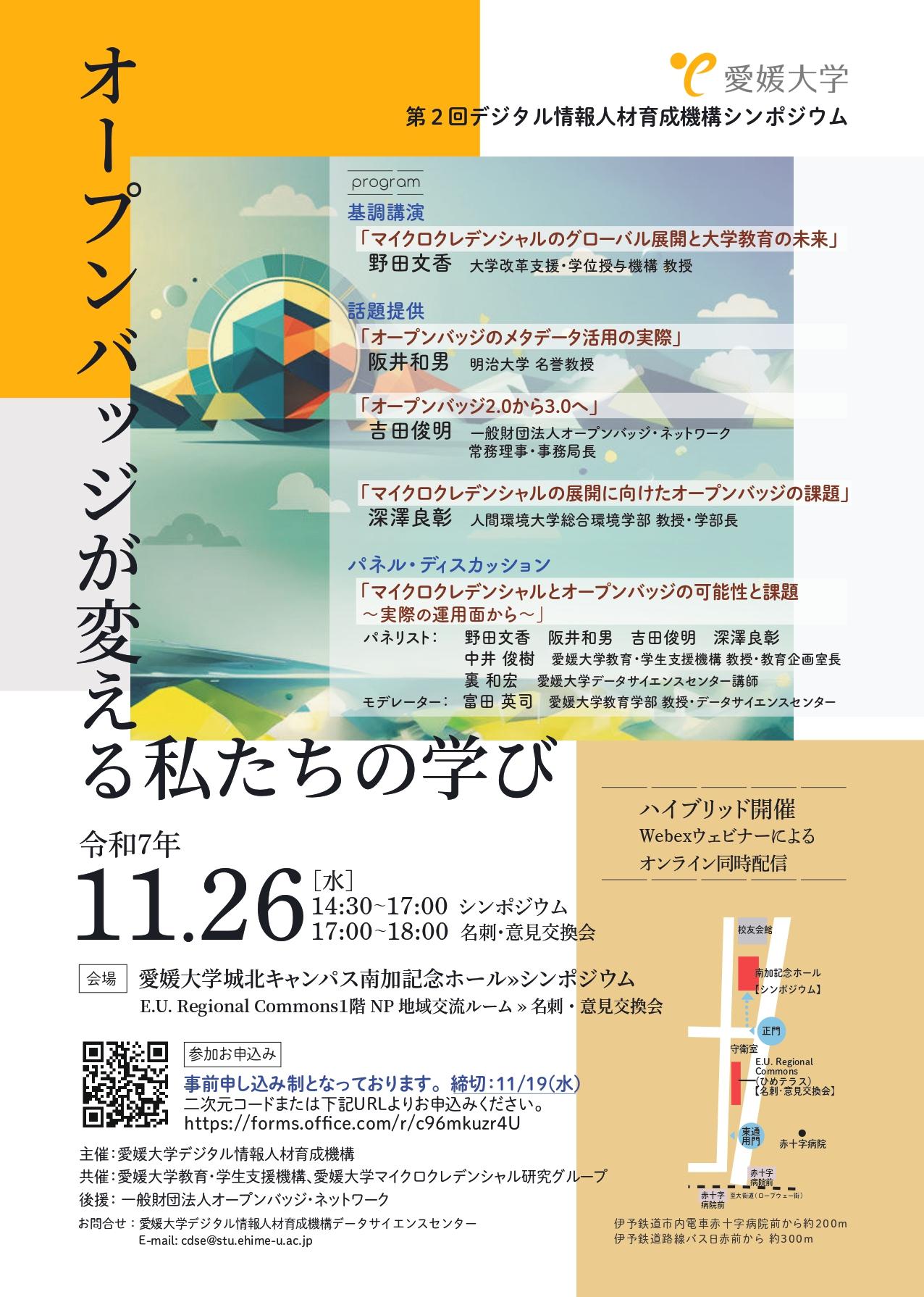 今般、愛媛大学デジタル情報人材育成機構が、デジタル情報人材育成機構シンポジウムを開催することとなりましたのでお知らせします。